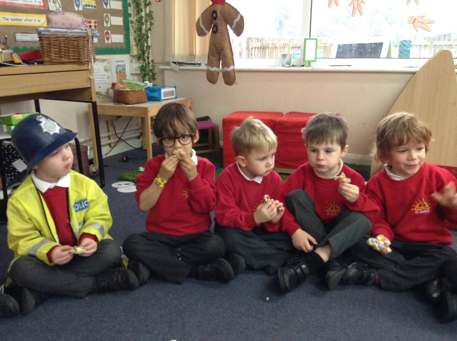 Well to everyone's shock this morning the Gingerbread Men had escaped from Penguins' classroom! As we left CCTV cameras up (made in our workshop) we were able to capture footage of them as they ran away.