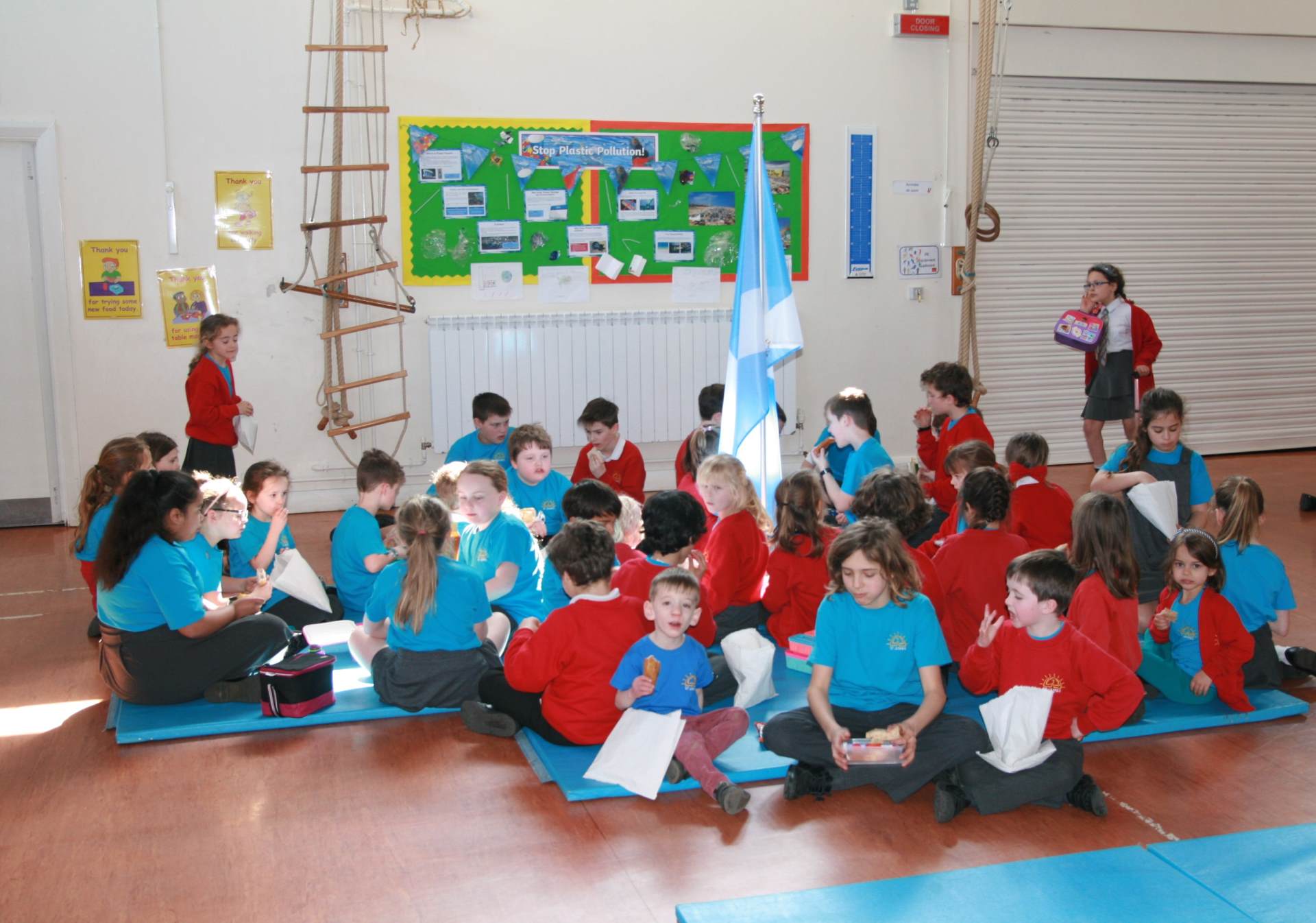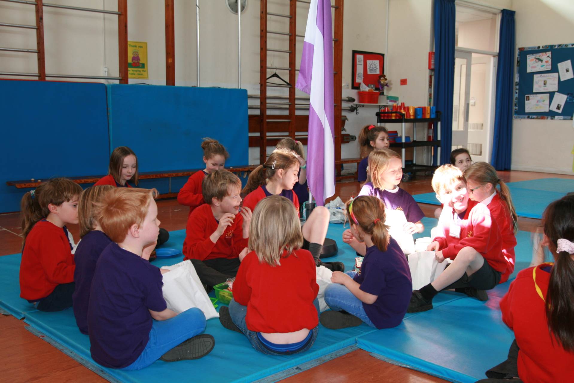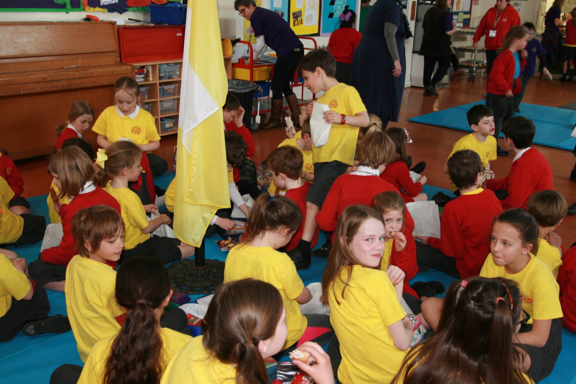 Today we had our second House lunch which was "the best lunch ever!" according to one child. See some photos below of our beach-themed lunch where our fish and chips were served in paper bags and the children sat around their house flags...