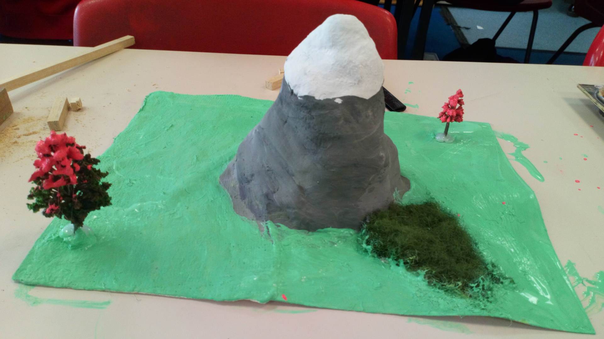 After some research on their favourite mountain and a few weeks of glue guns, paint and cotton wool, we have our own mountain range!