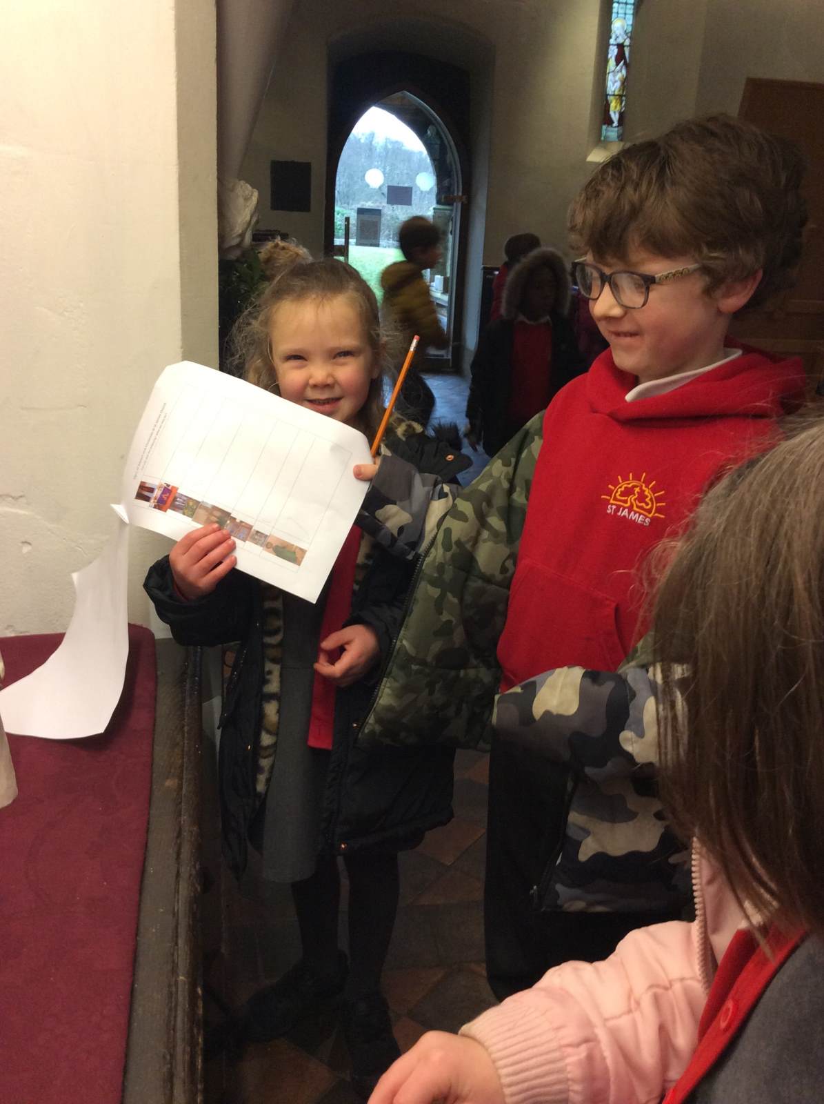On Friday, as part of our RE unit 'Why does Christmas matter to Christians?' Owls visited Reverend Hannah at St James church. Our focus was Advent and the Christmas story. Rev Hannah had designed a tick sheet and the children were tasked to go on a hunt around the church to find the various signs of advent and the Christmas story. Some were harder to find than others! We learnt that there are many ways Advent is celebrated in church.