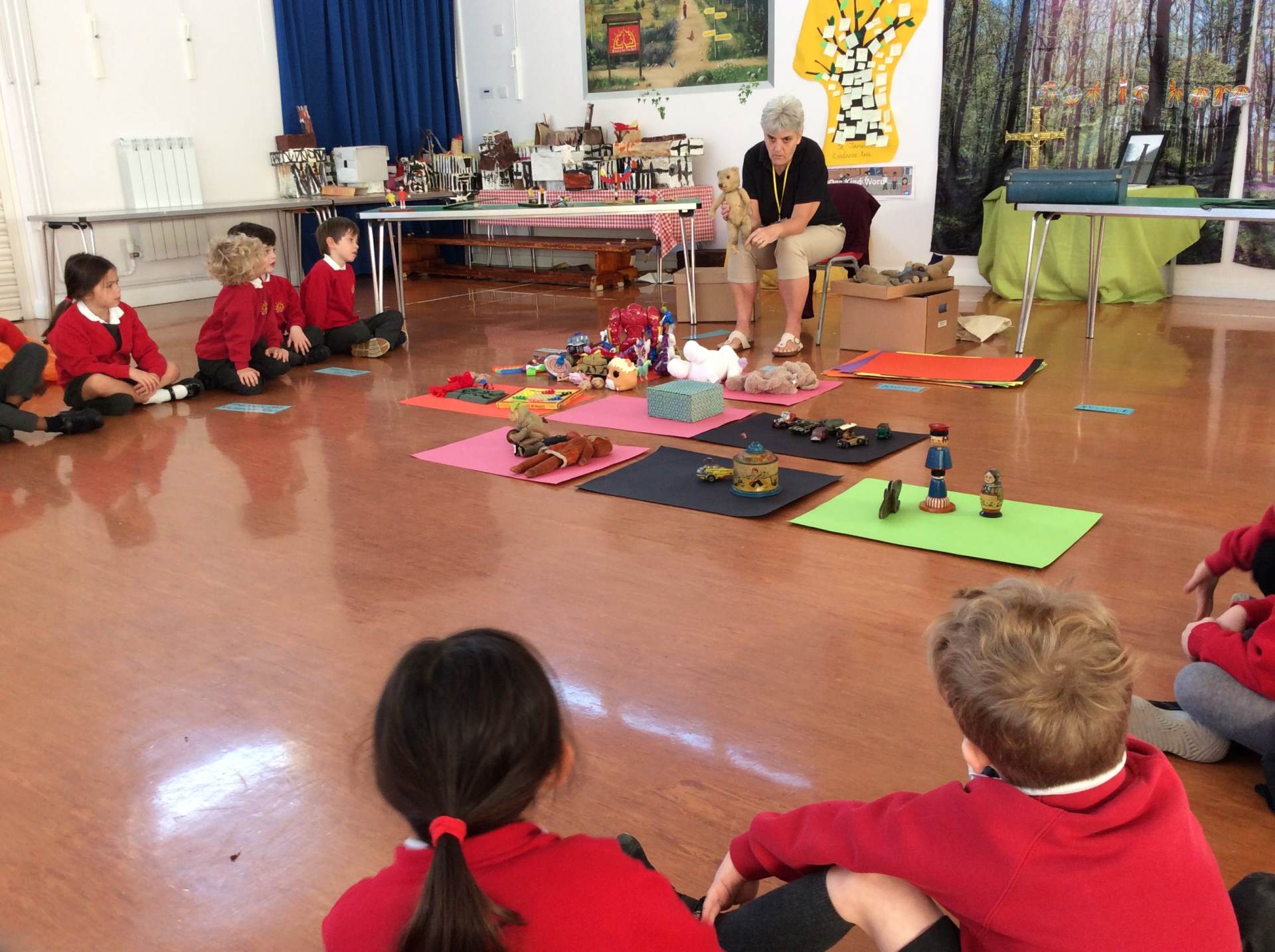 On Thursday we were fortunate enough to have Kay from Haslemere Museum join us to talk to the children all about toys from the past. The children brought their own toys in and made comparisons between the museum toys, some of which were up to one hundred years old, and their own toys. There was a lot of discussion around the different materials the toys were made out of, and how over the years the materials have changed, and why.