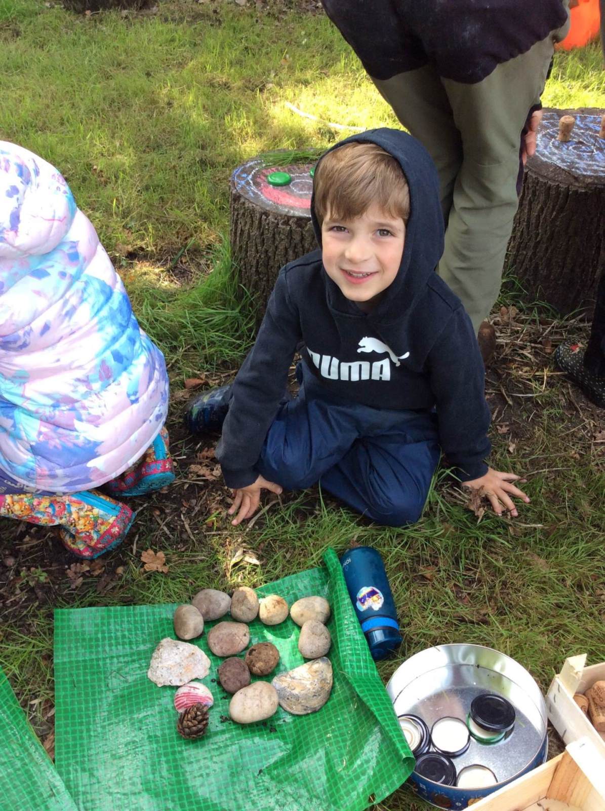 Once in the Forest School site we talked about how wonderfully different we all are and, using natural resources, we each created a portrait of 'me' which were all unique! Take a look below at some of our wonderful creations!