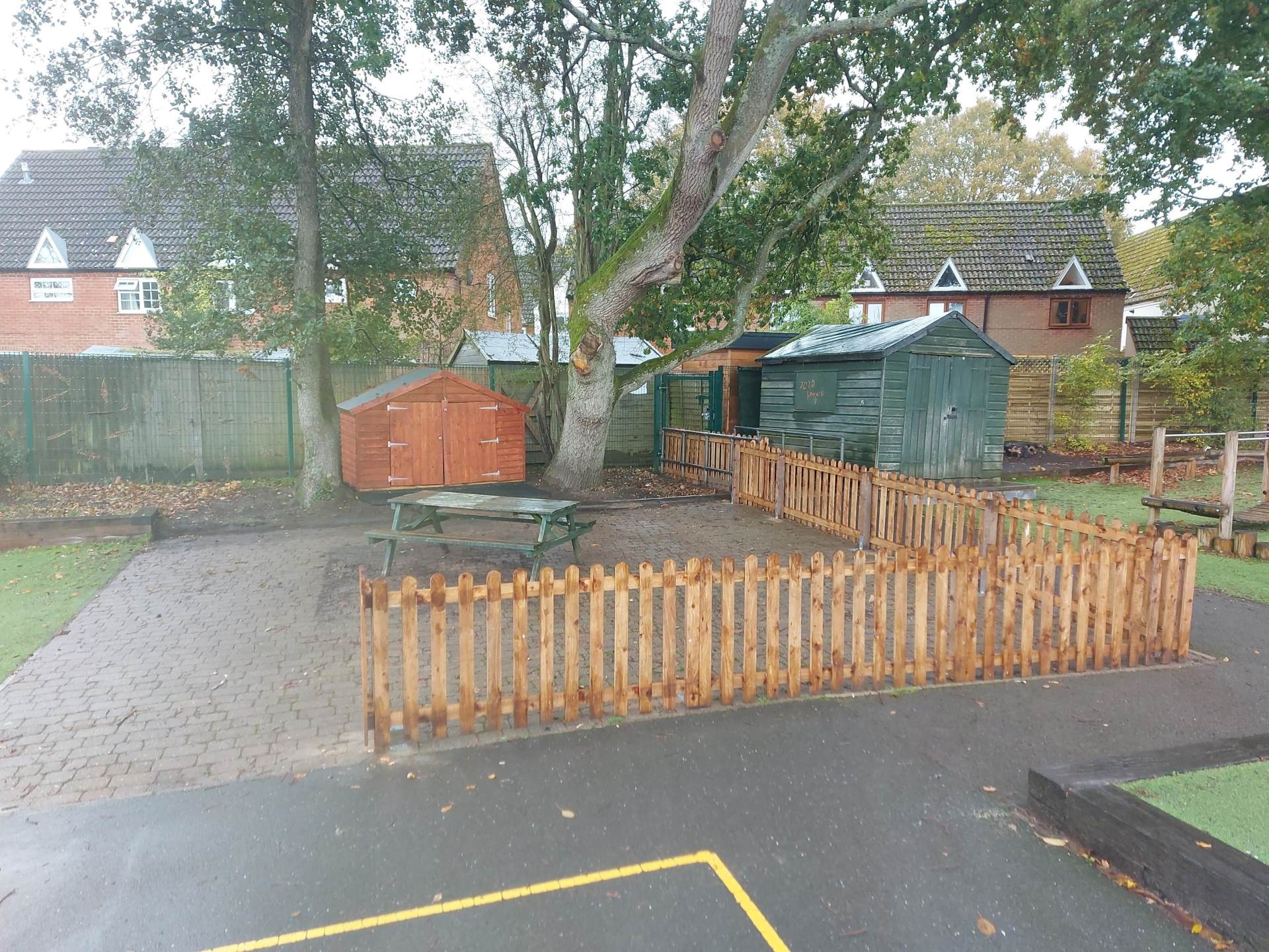 You'll have to use your imagination, as the photo was taken on a glorious, grey November morning, but come spring, we hope to have seating and lots of planters with sensory flowers and shrubs. You will also see that our new Reading Shed has been put in position, ready to accept its books.