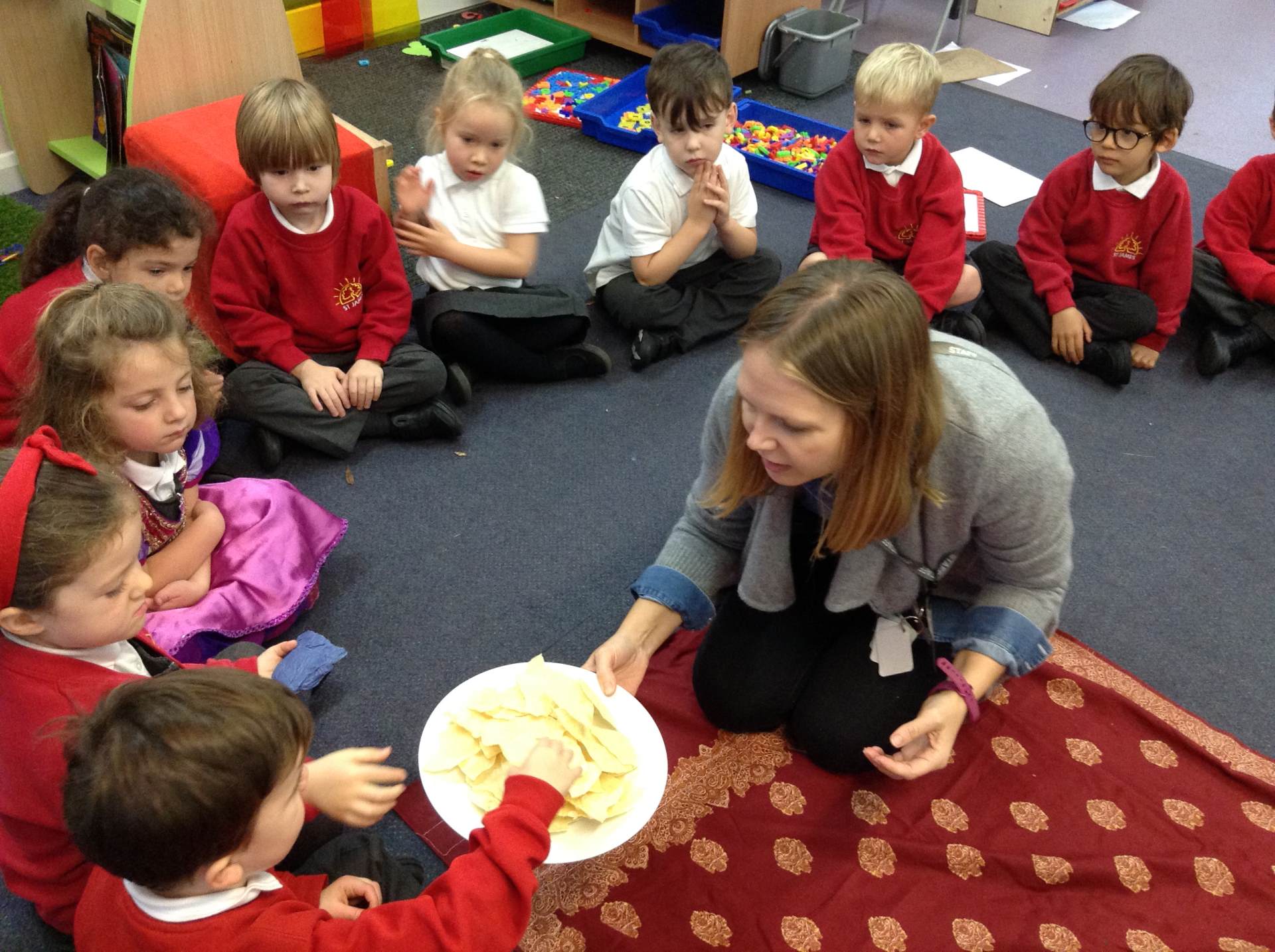 On Thursday, Penguins celebrated the Hindu festival of Diwali. We listened to the story of Rama and Sita and learned about the Goddess of Wealth, Lakshmi. To celebrate, we listened and danced to traditional Indian music, created our own Rangoli patterns and made our own clay lamp holders which we can take home and light. The highlight for everyone was when we shared a special snack time as the children shared poppadoms with a penguin made dip - it was delicious!