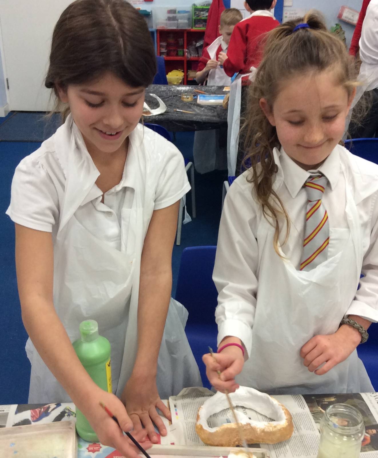 Finally, they painted using beach-inspired colours. Their finished sculptures will be on display at the St James art exhibition in the hall, this week on Wednesday 16th after school.