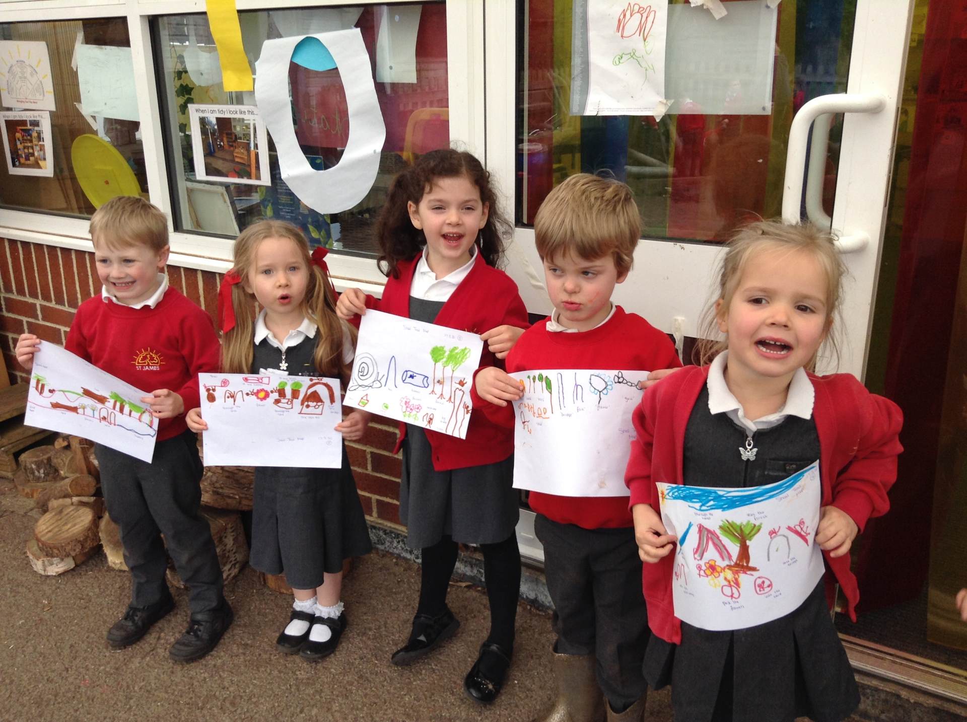 It is another busy week in Penguins this week as we continue to explore different 'creepy crawlies'. This week we have been reading Snail Trail by Ruth Brown. It is a lovely story following the 'trail' of a snail as he goes up a hill, over a bridge and down a slope. The children listened to the story carefully and drew their own trail as the story was read to them. Below are some colourful trails.