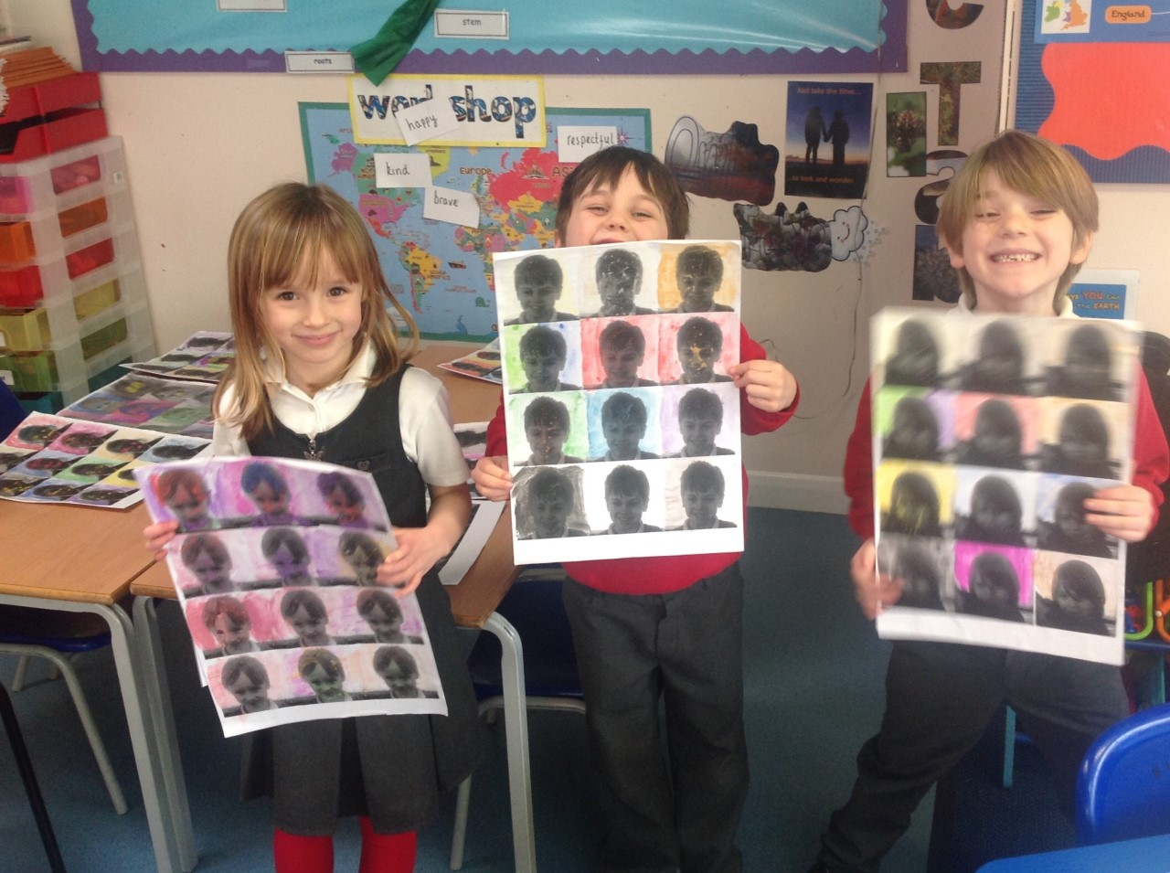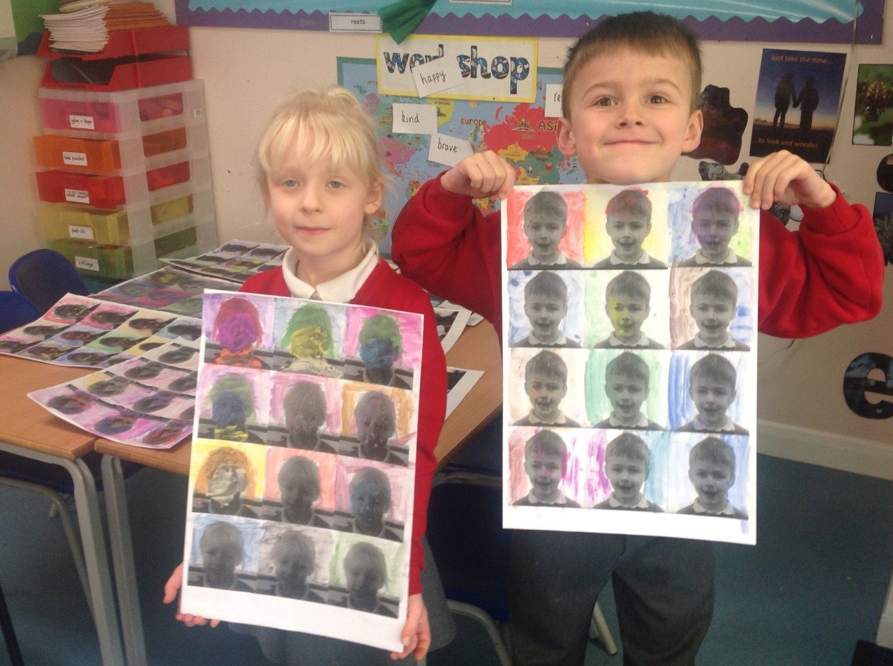 Last week we looked at Warhol’s art but rather than printing we used watercolour paint.