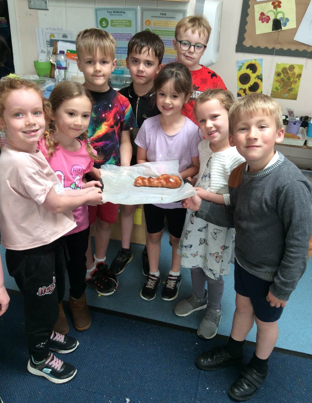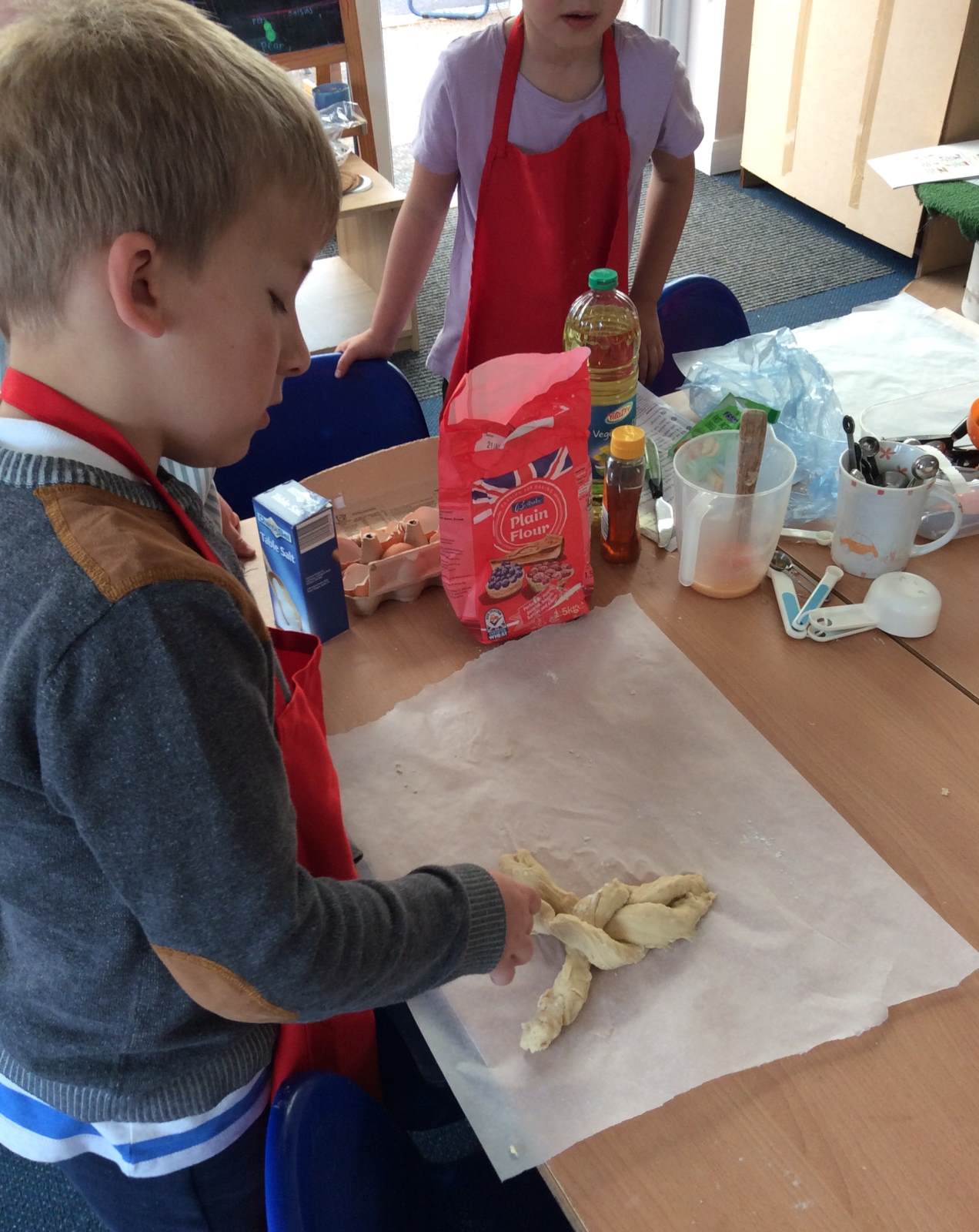 Last Friday, Owls made Challah bread as part of their RE learning about the Jewish day of rest called Shabbat. The Challah loaves play an important part in the ritual. The children made the dough using flour, eggs, honey and yeast, then kneaded it before shaping it into a plait and baking it. The loaves rose perfectly and came out golden brown. We broke the bread up and shared the loaves together - it was delicious.